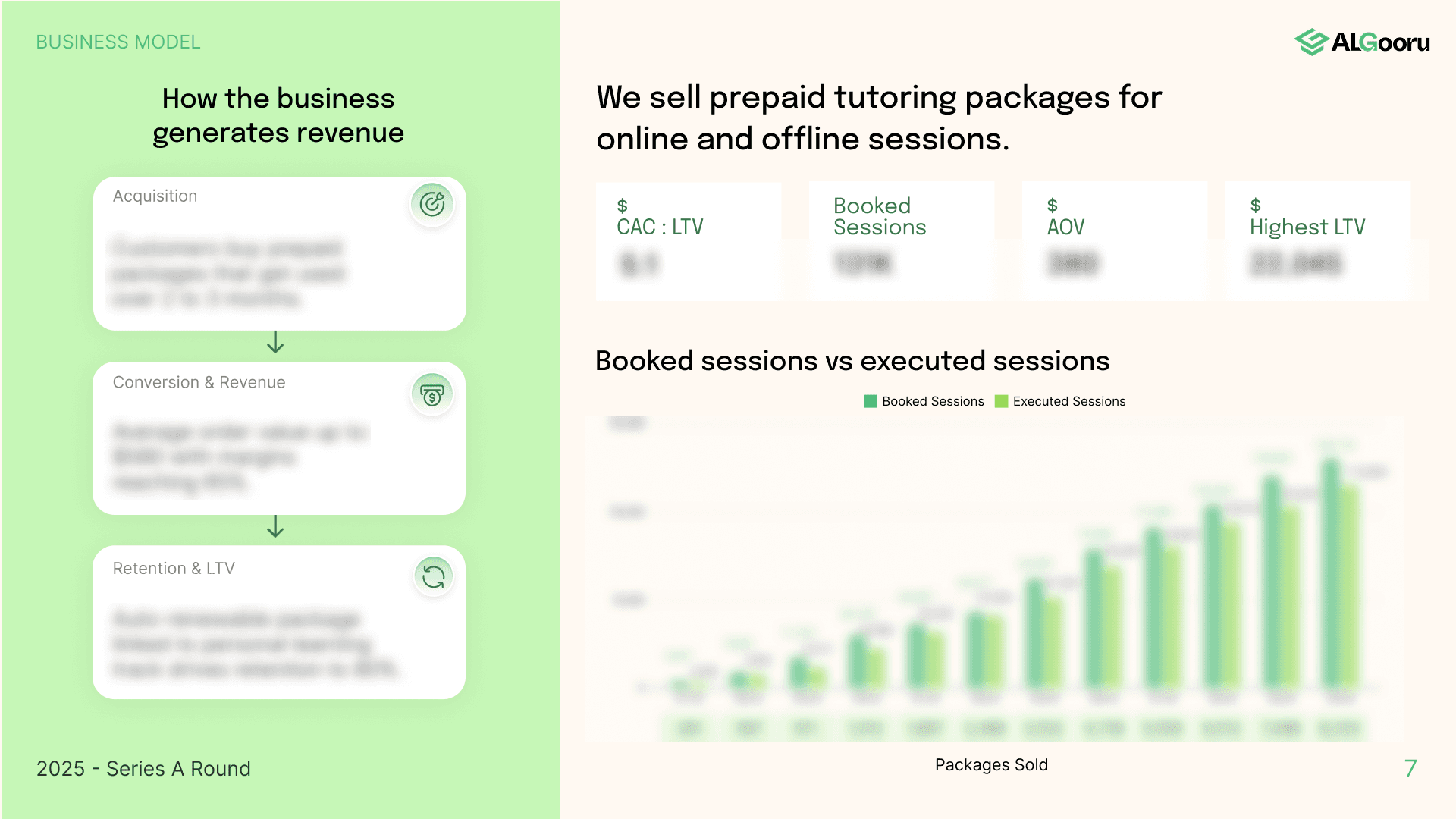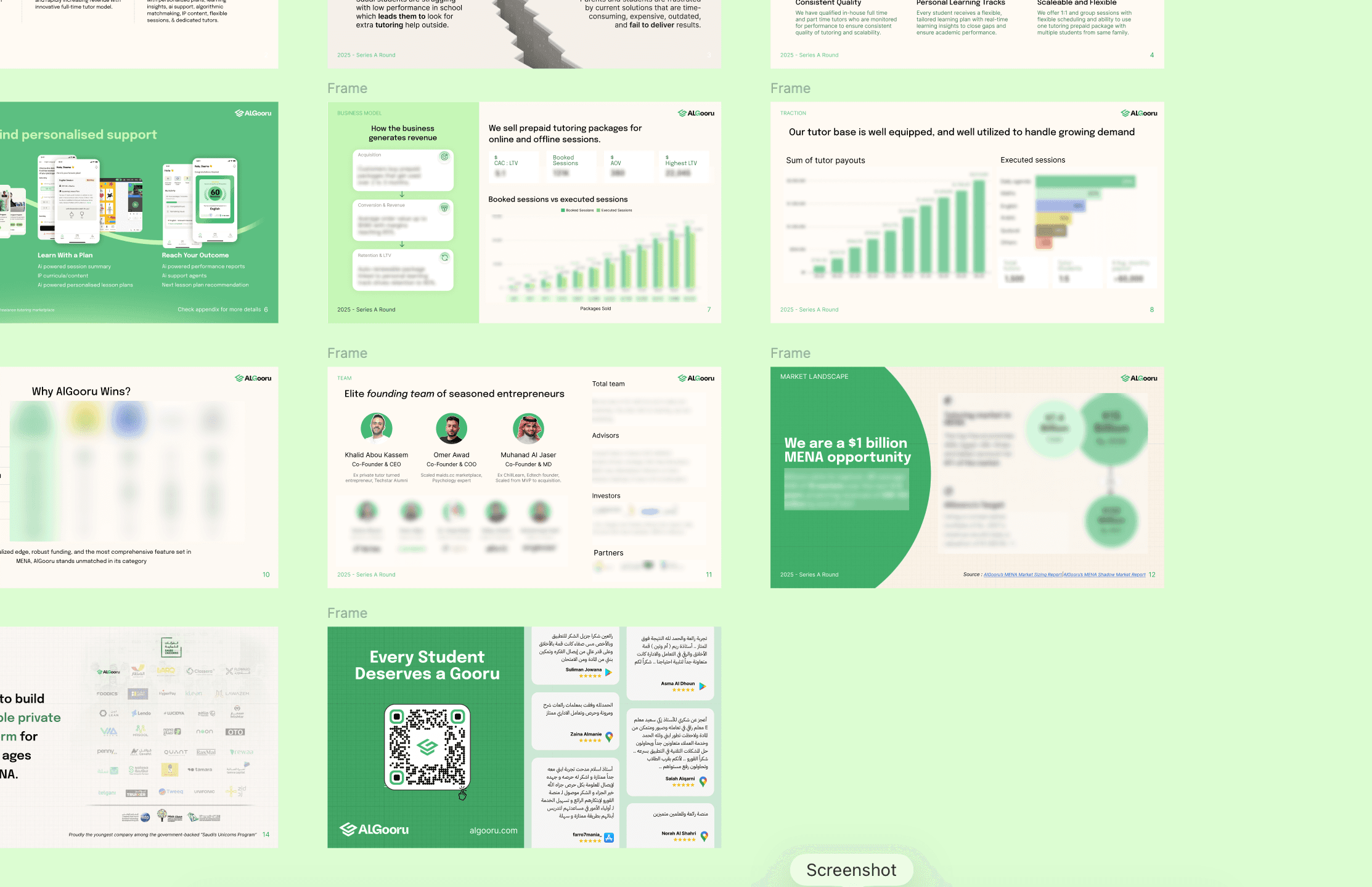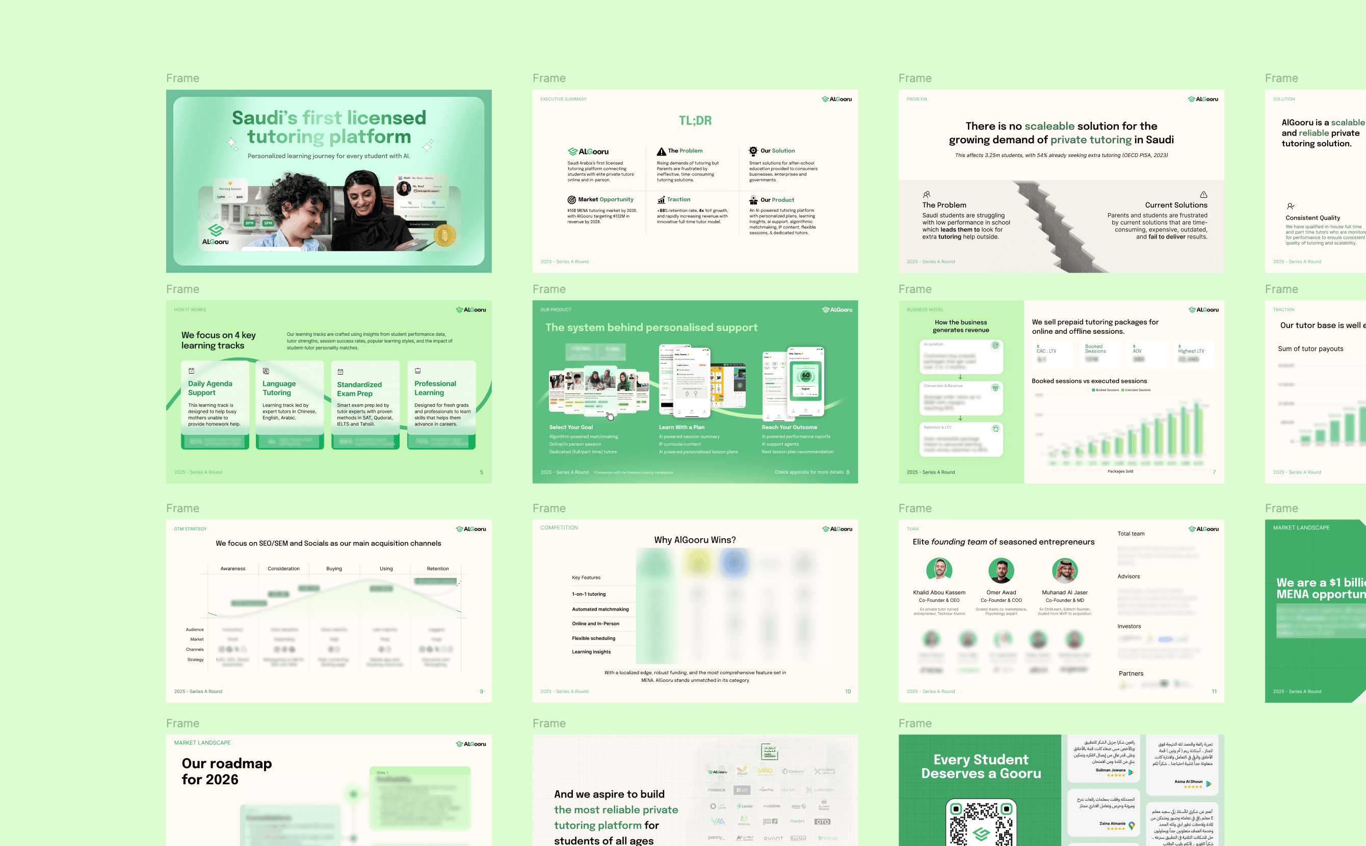 The AlGooru pitch deck became a long term design project shaped by constant refinement. Over five years it went through 32 iterations, aligning the story with every new stage of growth.